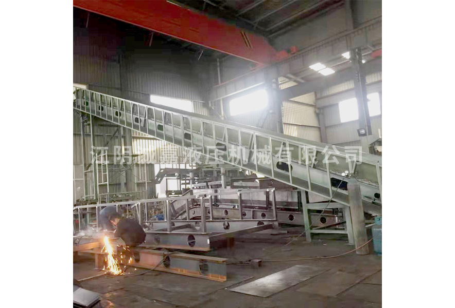 廢鋼輸送機,常用來輸送金屬廢料。輸送機以標準頂板鏈為承載面,由馬達減速機為動力傳動,運行在專用導軌中。由于采用金屬板作槽體,可承受一定的沖擊力,同時由于它的牽引鏈的牽引力在,所以,其承載能力較大。 使用范圍:該設備主要用途是將廢金屬料、金屬打包料等金屬廢料,輸送至廢鋼破碎機內進行破碎處理。輸送速度可調節。